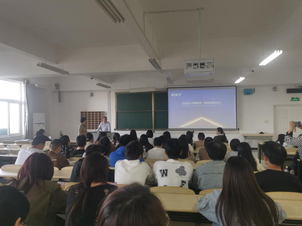 在讲座结束之后,郭老师进行了大信会计师事务所招聘宣讲,为大家介绍了事务所对实习生的基本要求以及简历投递方法。宣讲结束之后,有同学就实习招聘和面试等问题向郭老师提问,郭老师都一一解答。