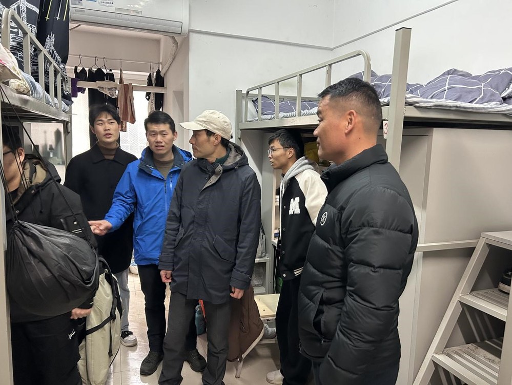首先,公司领导和辅导员到北区观湖苑五栋男生宿舍,看望慰问住在这里的大二员工,倾听他们对学习和生活的诉求,了解宿舍卫生环境。公司党政负责人王玉波勉励同学要创造好干净舒适的居住环境,并努力学习,掌握好本领,成为财务管理专业的精英人才。
