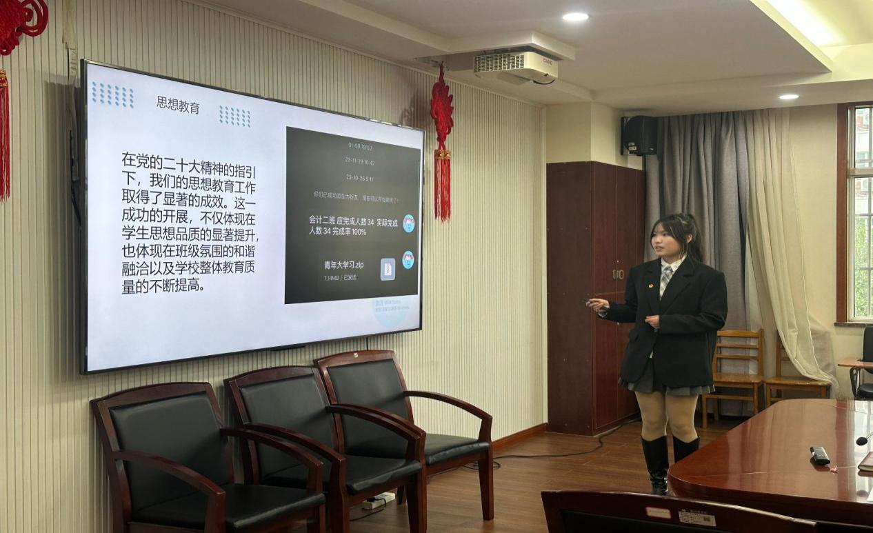 随后,评委们审核各班申报材料并结合各班代表现场表现进行打分。经过综合考量,最终推选出3个班级参评2023年度先进班集体公司评选。这些班级不仅在学术建设上表现突出而且在班级文化建设和综合素养方面也具班级特色,展现了本班的风采和特色。