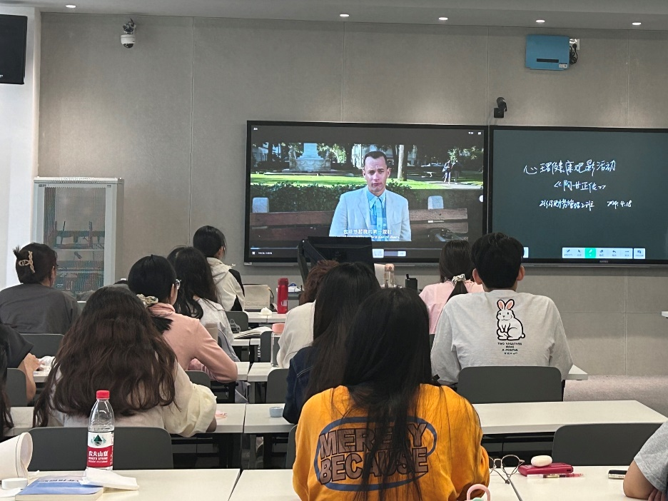 本次活动充分采集班级同学意见,经过讨论、投票确定了活动形式与展播影片:《阿甘正传》。本次心理健康活动的流程包括三部分,分别是“宣读公司心理健康教育主题活动安排”、“观看影片”、“心得分享”,活动开展期间,现场气氛活跃、欢笑不断。对于主人公阿甘充满艰辛却永不放弃的传奇人生,不少同学表示深受感动、深有启发。影片结束后,谭欣雨、何紫颖同学结合成长经历与在场的同学们分享了个人感悟。