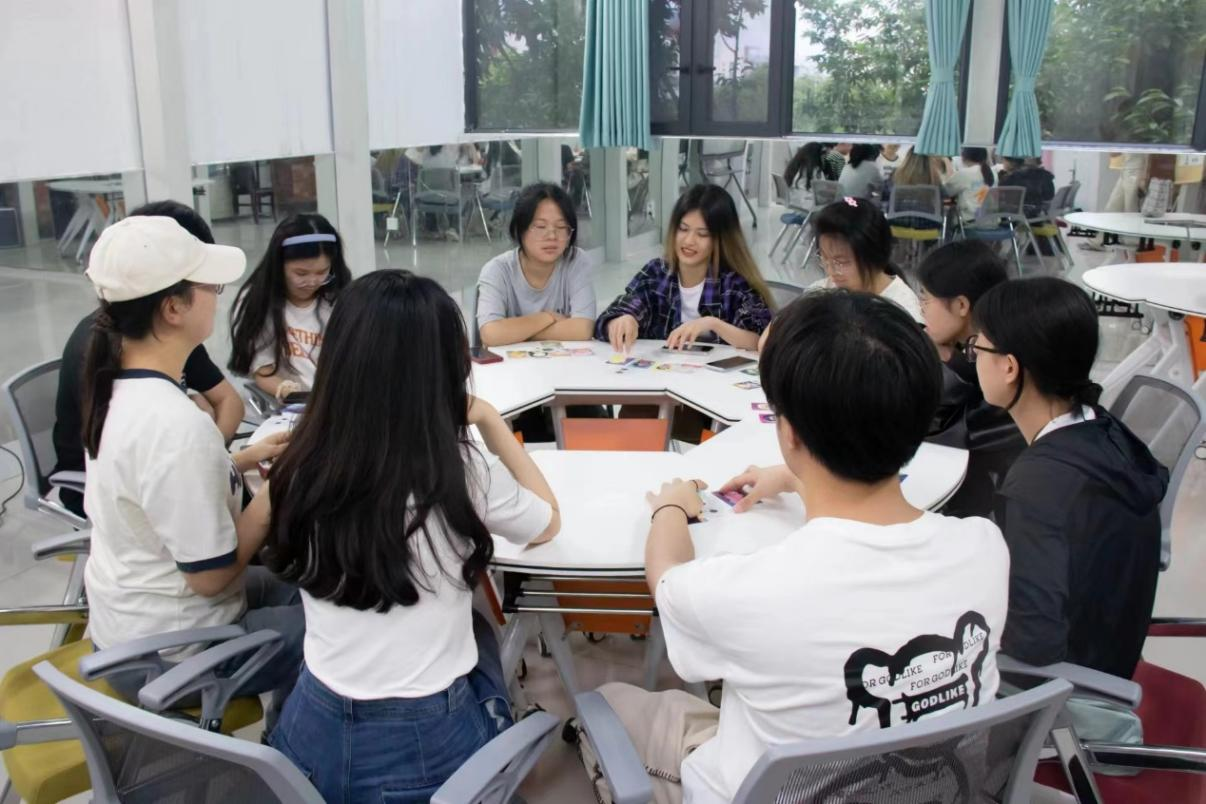 自我探索过后,主持人邀请各位同学发表感想,同学们争先恐后地发言,表达自己此刻的所感所想。陈天烁同学对本次活动感触颇深,“我认为本次活动有两个关键词,‘倾听’和‘倾诉’,活动中,大家敞开心扉,畅所欲言,在游戏中探寻着内心的平衡与和谐,感受彼此的联结。”