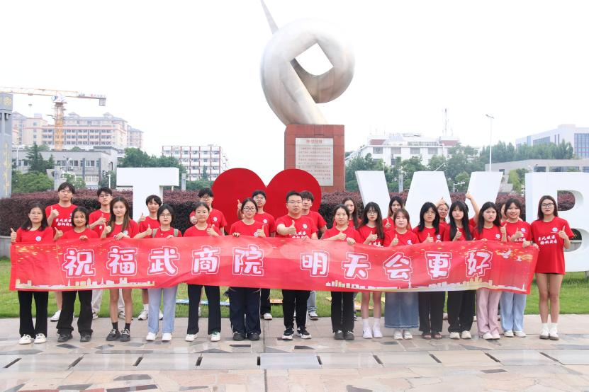 夕阳余晖洒满天际,晚霞如火,绚烂夺目,铺满整个天空。伟德官网的师生们身着统一的带有“乘风破浪,扬帆起航”口号的红色院服,在晚霞的映衬下,形成一幅充满生机与活力的美丽画卷。致远广场上,伟德官网师生们齐声高喊祝福语,声音嘹亮,情感真挚:“伟德官网祝愿武商院,明天会更好!”这些饱含深情与期望的祝福语在广场中央回荡,吸引了众多员工的关注,他们停下脚步,共同见证这个难忘的时刻。这一场景与广场上醒目的“I Love WBU”字样相映成趣,充分展现了伟德官网同学们对母校的深厚情感。