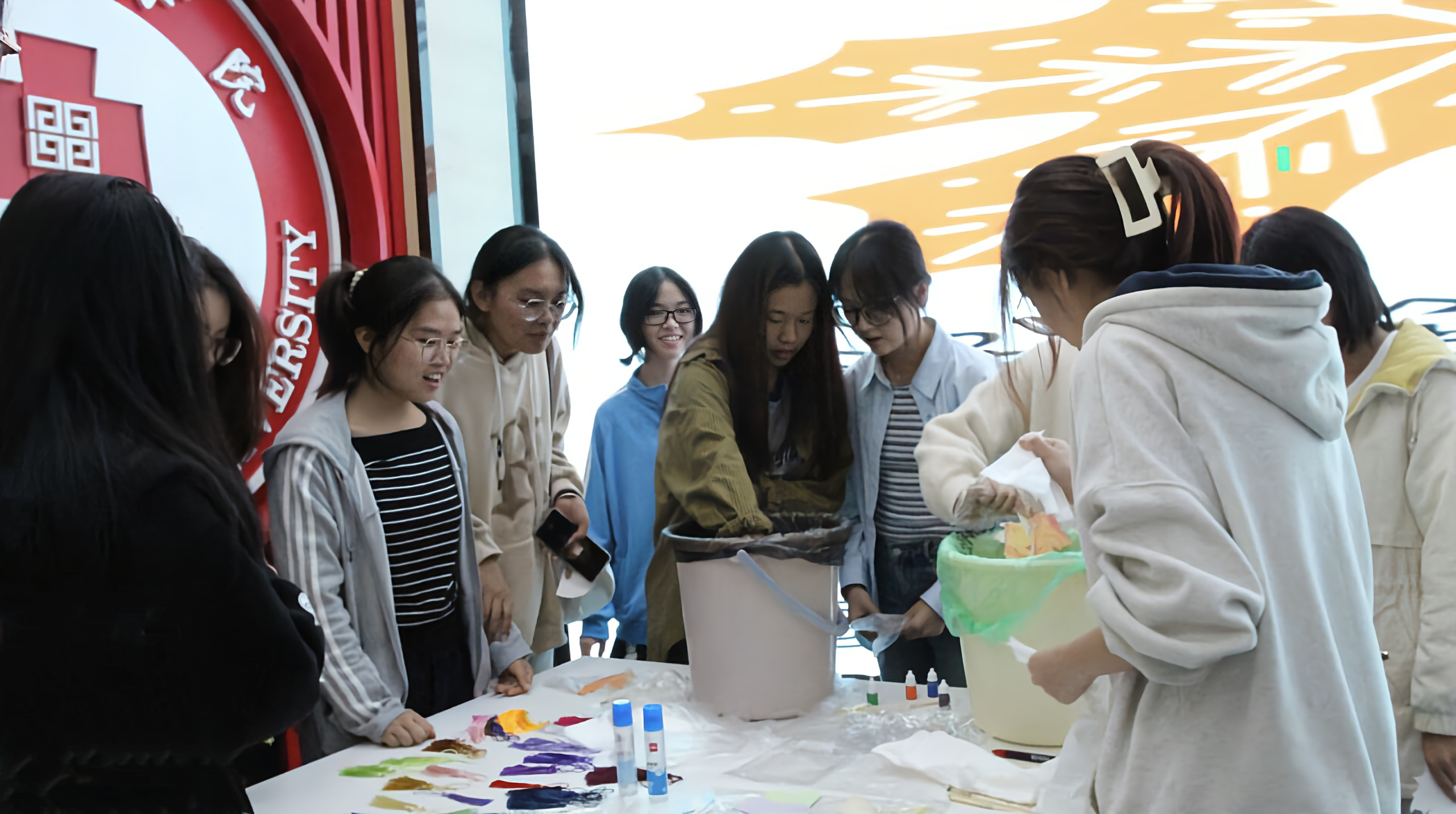 (活动成员在制作书签)