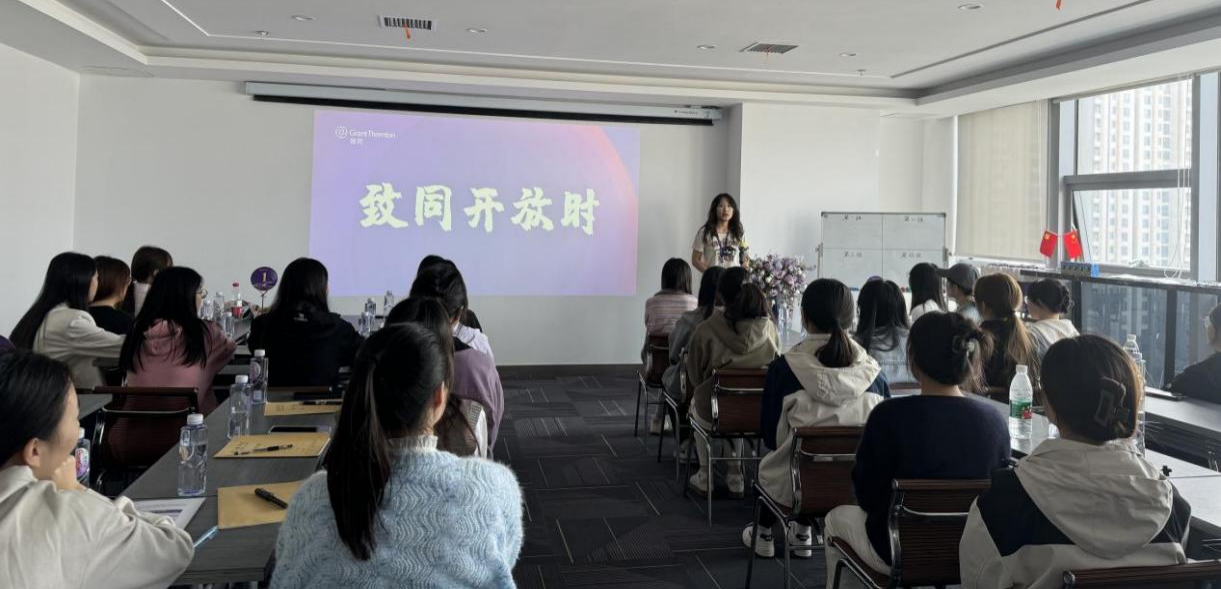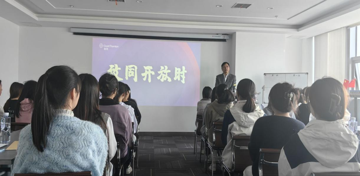 紧接着,事务所管理合伙人金鑫向同学们介绍了致同的发展历史、业务范围以及行业地位。他的话语中透露出对事务所的深厚感情和自豪之情,让同学们对致同有了更加深刻的印象。同时,金总也和同学们分享了他与众多业内优秀人士的交往趣事,让同学们见识到了许多行业内的翘楚精英,这更加激起了审计学子们,往后愈发努力刻苦学习的初心,给了同学们莫大的鼓励和支持。