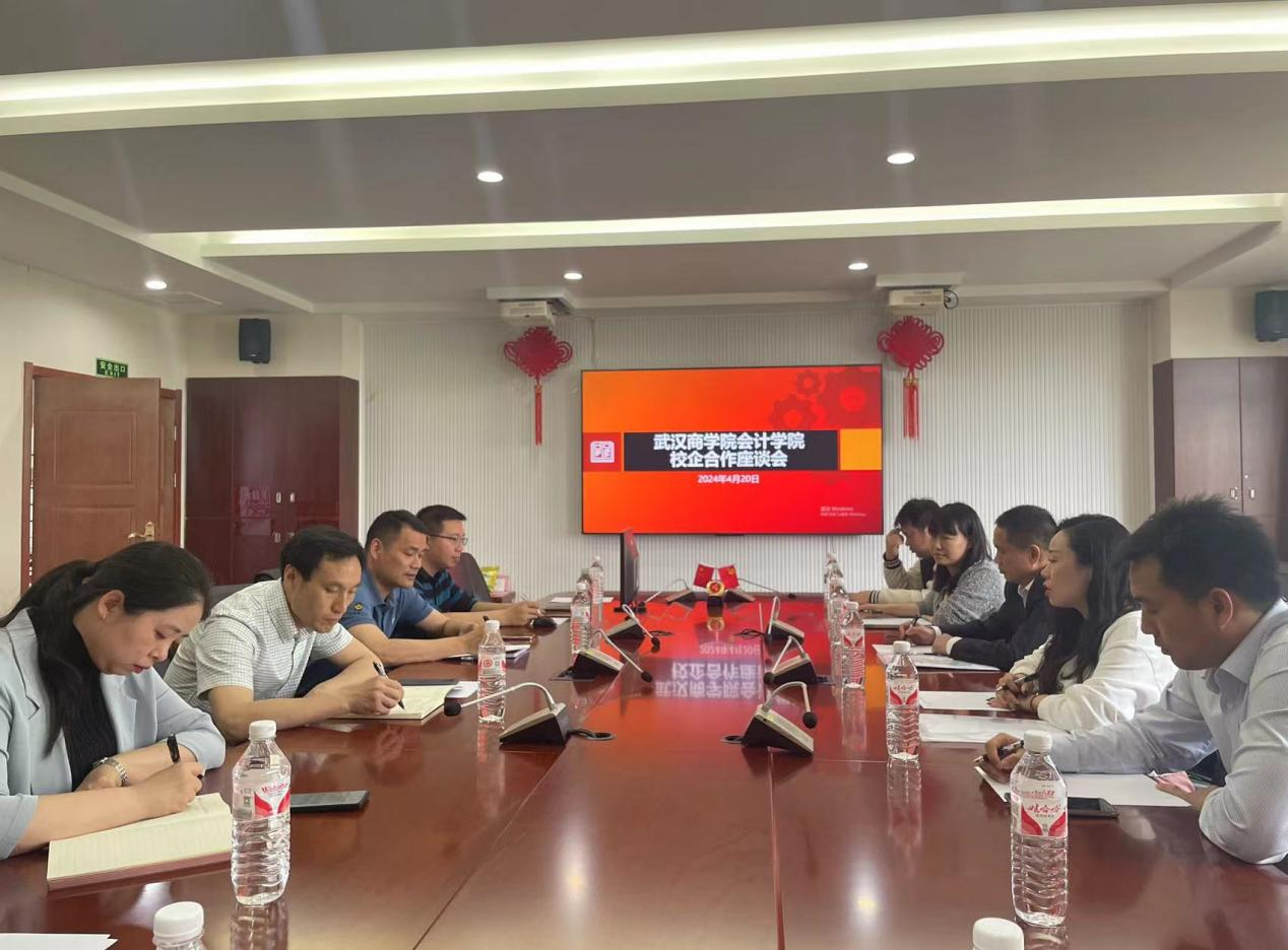 参加本次校企合作座谈会的企业有武汉灏天来财税管理集团有限公司、湖北蜗牛企业管理有限公司、武汉企办帮帮税务咨询有限公司、武汉轻账财税服务有限公司、武汉瑞英博商显科技有限公司、武汉联众云网信息科技有限公司、武汉君晟驾驶员培训有限公司、武汉沃创巴巴科技有限公司、深圳市法本信息技术股份有限公司、湖北新文道时代教育科技有限公司等10家企业