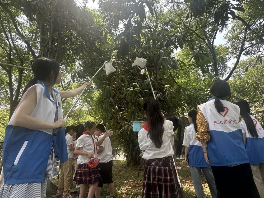 采摘前,老师向同学们讲解了枇杷相关知识和一些采摘枇杷的技巧,还给同学们做了示范并强调了安全注意事项。一声令下,同学们兴奋地拿起篮子,手持抄网,在老师和志愿者的引领下,以小组为单位迫不及待地开始采摘,大家互相帮助,忙的不亦乐乎,枇杷树下一片欢声笑语。