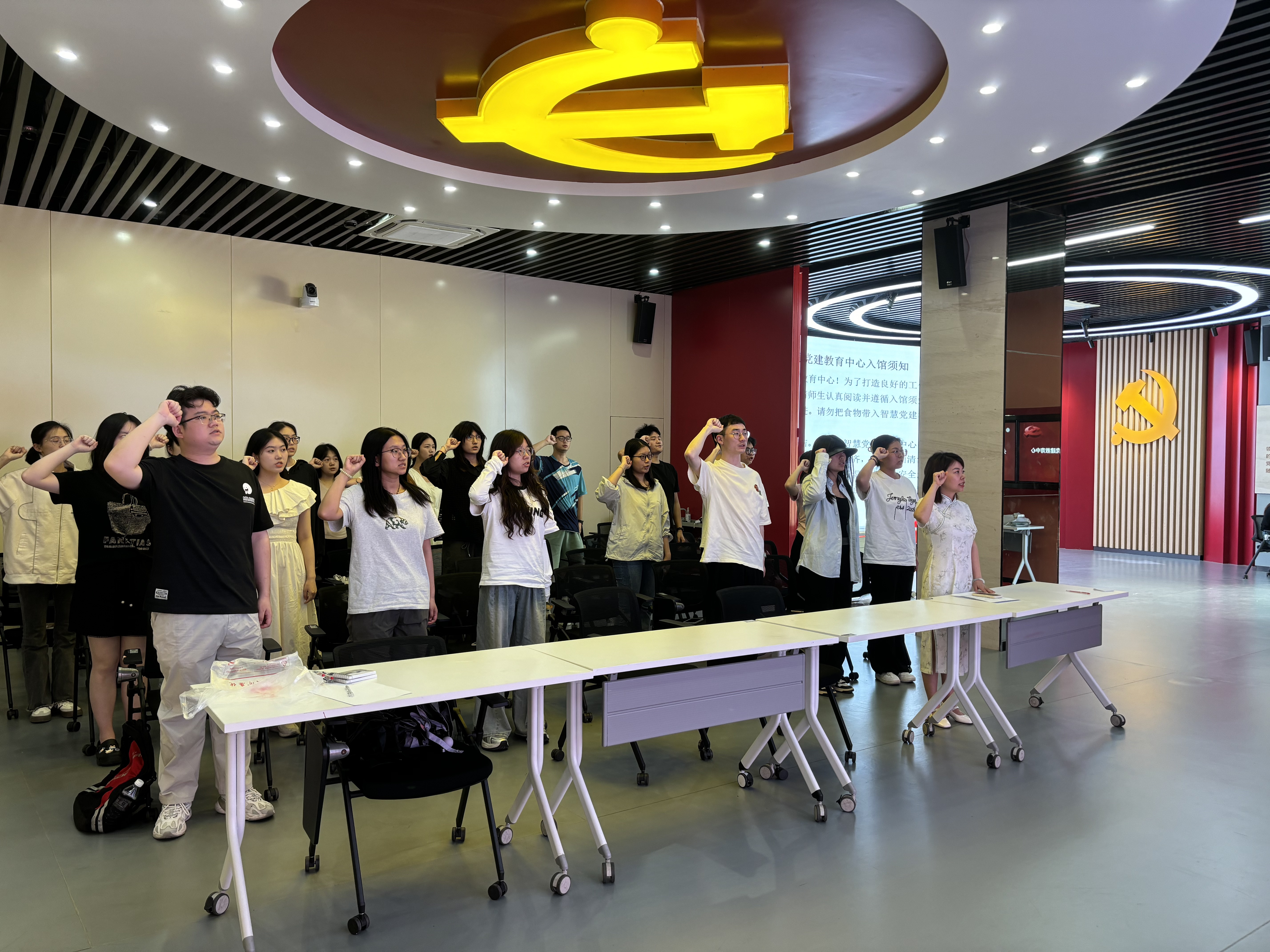 活动在庄严的氛围中拉开帷幕。党员们首先进行了签到并佩戴党徽,随后在主持人的带领下参观了智慧党建中心,深入学习了中央八项规定精神。通过详实的历史背景和具体内容讲解,党员们进一步理解了中央八项规定在全面从严治党中的重要意义。