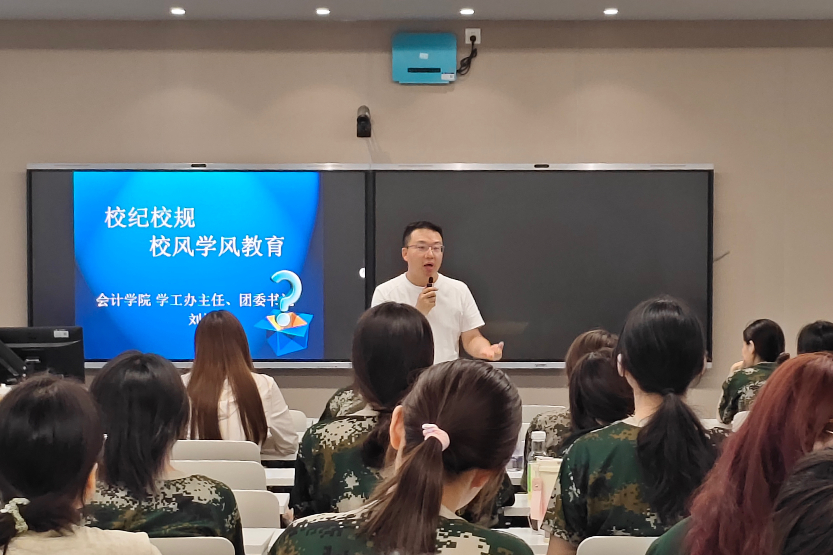 (伟德官网学工办主任刘桢老师讲解校纪校规和奖助勤贷款相关问题)