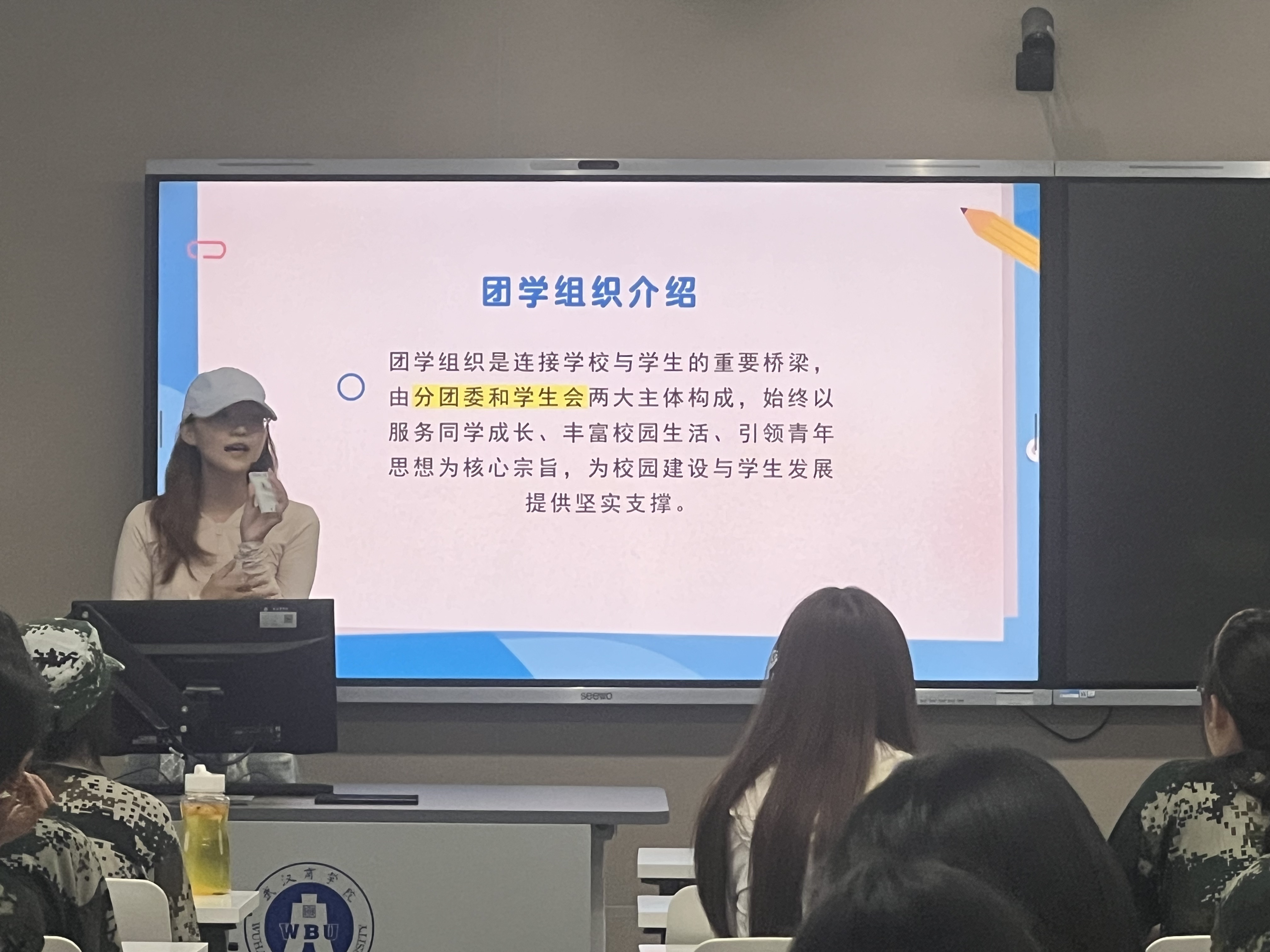 最后,伟德官网员工会执行主席陈梦霞同学、分团委员工副书记林祎萱同学、学术创新部部长赵语妍同学向新生们详细介绍了员工会和分团委的工作情况,鼓励大家积极参与其中,丰富老员工活。