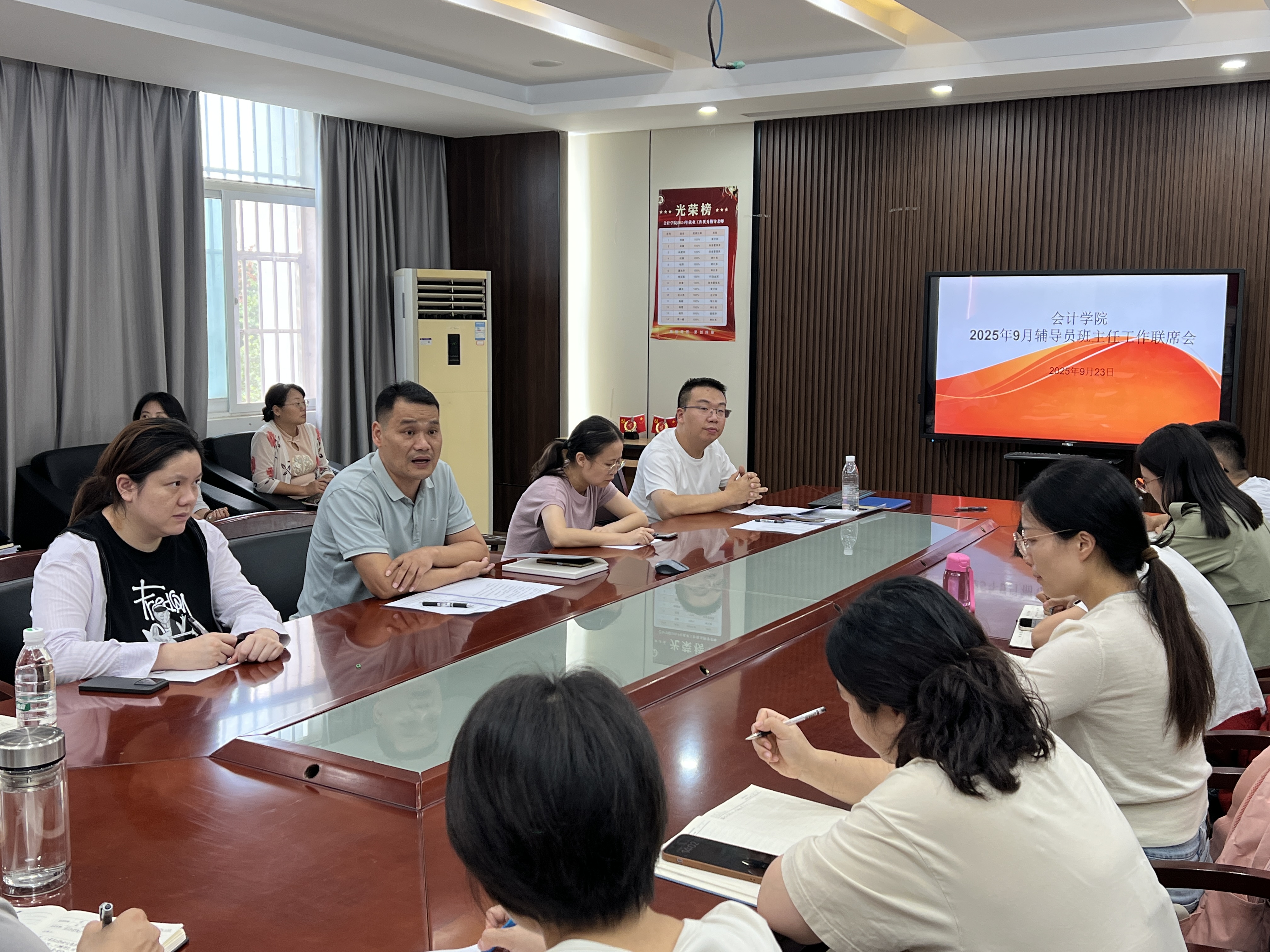 9月23日下午,会计公司2025年下半年辅导员、班主任联席会在北二303会议室召开。公司党委书记方武、全体辅导员、班主任出席会议,会议由员工工作办公室主任刘桢主持。