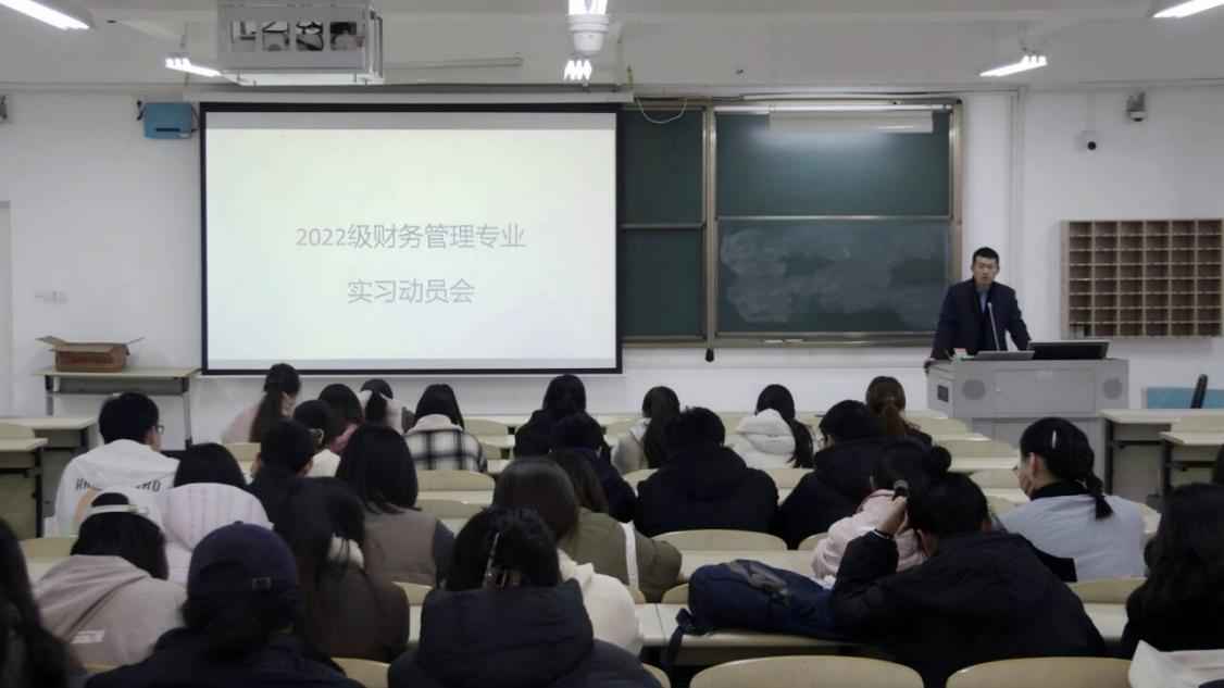 2025年11月18日星期二下午4点,由伟德官网财务管理系系主任刘慧、专业负责人宋文娟老师和22级辅导员舒靖钧老师共同主持,召开针对2026届财务管理专业毕业生的一场实习动员会。