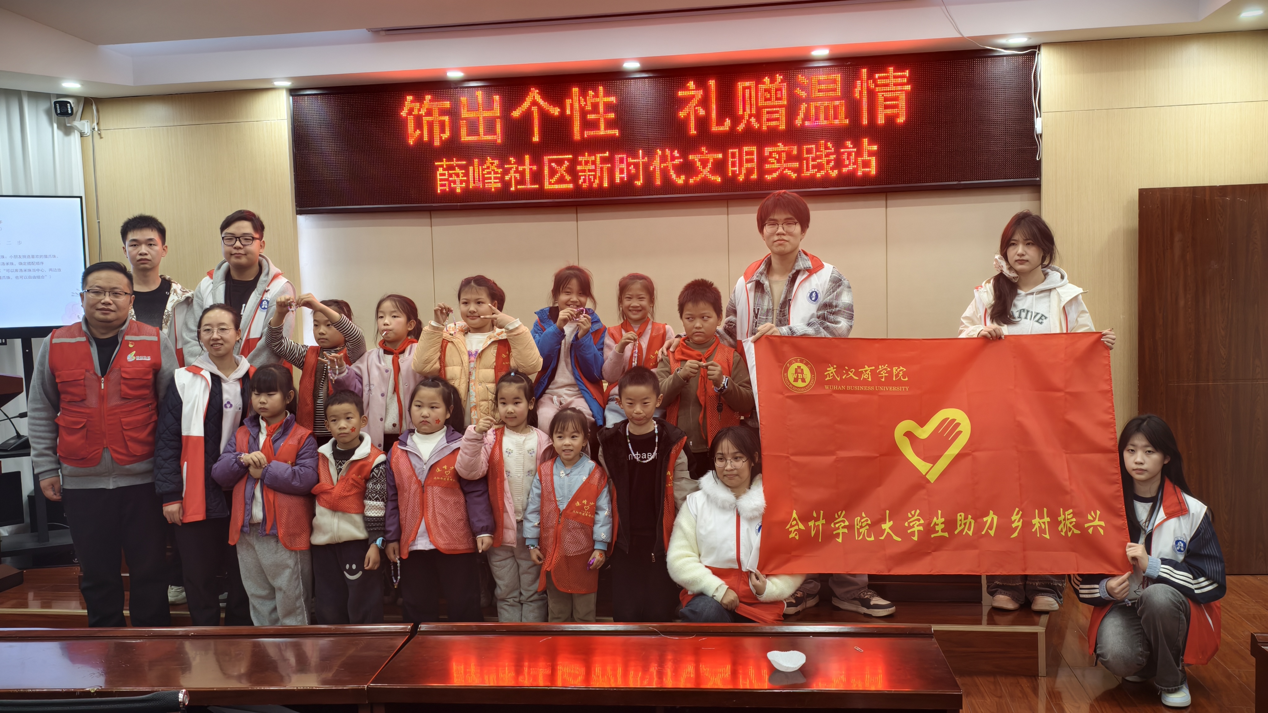 2025年11月28日下午,伟德官网志愿者走进薛峰社区服务中心,开展“饰出个性,礼赠温情”志愿服务活动,陪伴社区小朋友共同制作创意手链,传递温暖与欢乐。