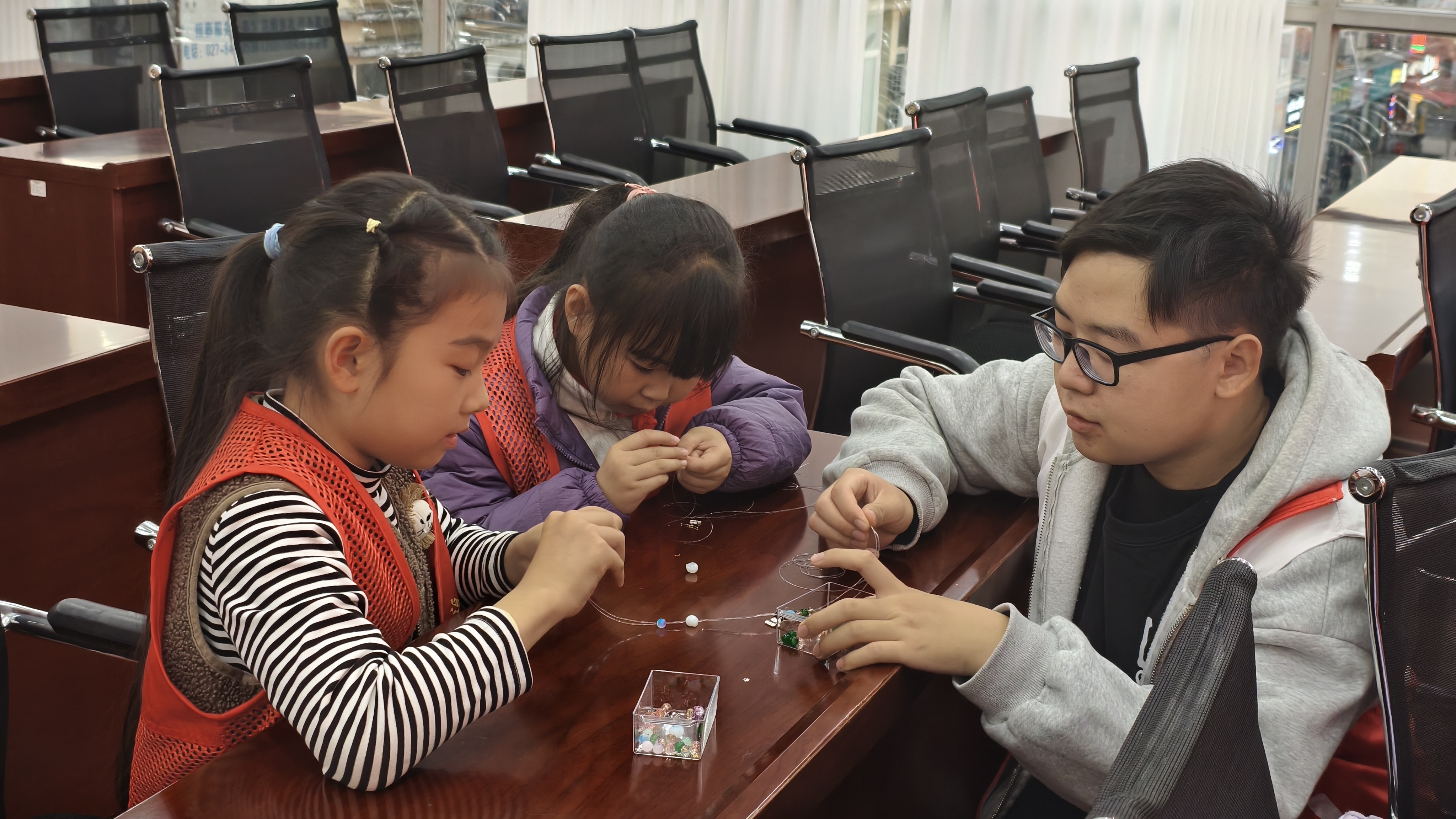 手链制作虽小,却处处体现着会计人特有的严谨与细致。从精准测量弹力线长度,到引导孩子规划珠子搭配顺序;从耐心穿珠时的轻柔操作,到最终打结固定的牢固收尾——四个步骤环环相扣,恰如会计工作中的凭证审核、账目梳理、数据录入和报表复核。志愿者们将专业精神融入每个细节,让小朋友在动手过程中,潜移默化地感受到规则之美与秩序之要。