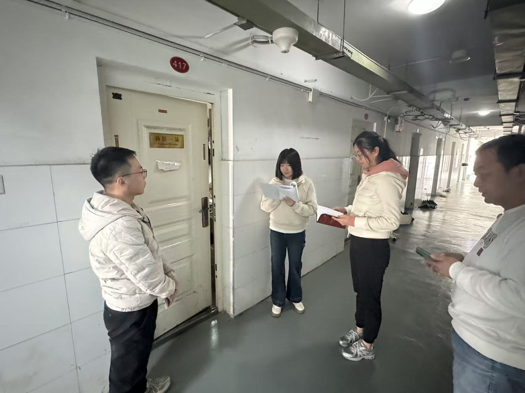 (班主任王子豪、李妍茹等老师走访一站式员工服务社区员工宿舍)