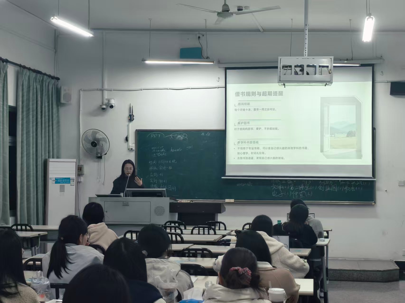 (班主任戴维思老师走进早晚自习讲解图书借阅规则)